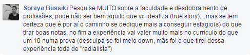 O estágio é muito importante, porque além de aprendermos muitas coisas diferentes, colocamos em prática todo o conhecimento da faculdade! É ótimo ter esse primeiro contato de emprego na área em que você escolheu trabalhar. Eu não falei muito sobre estágio em vídeo, mas aqui a Soraya da boas dicas: